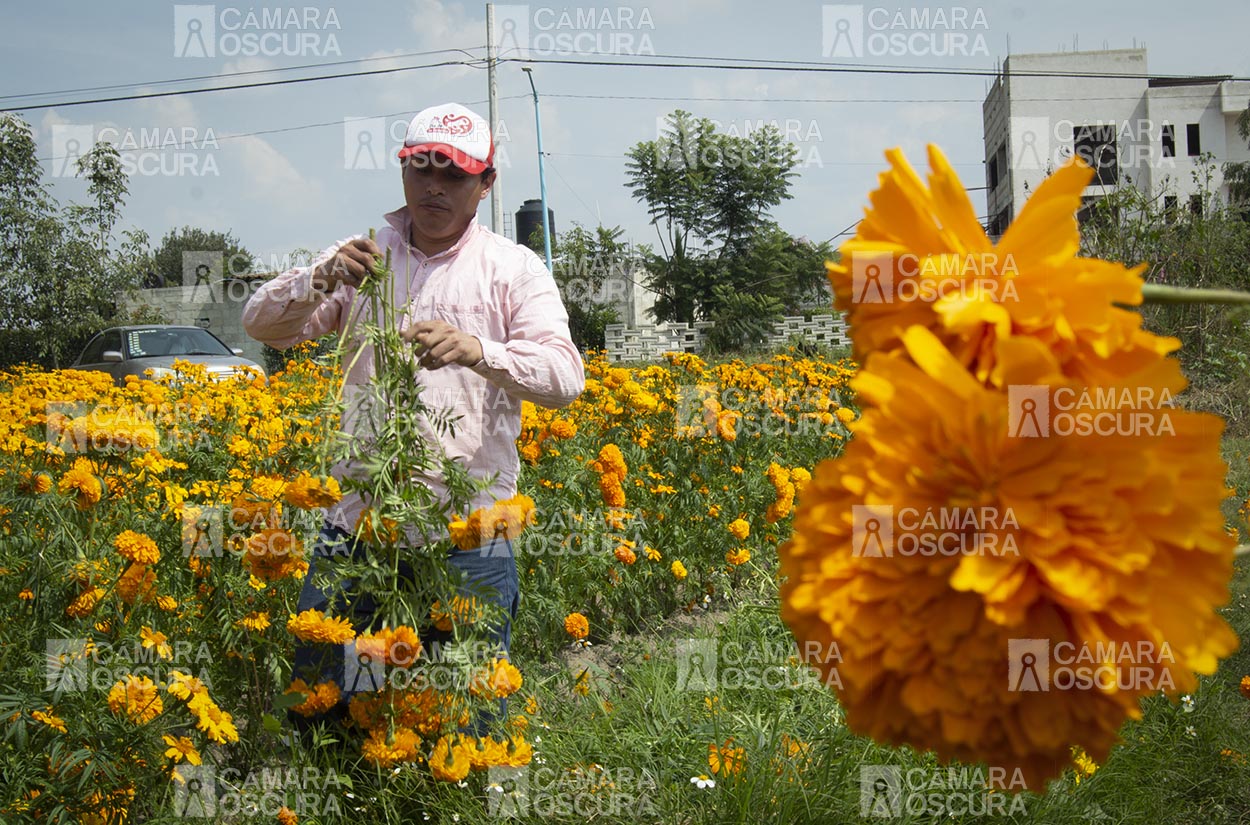 Tlaxcala, Tlax- 27 de octubre del 2022. Productores agrícolas del municipio de Tepeyanco, realizan el corte para la comercialización de la flor de cempasúchil.