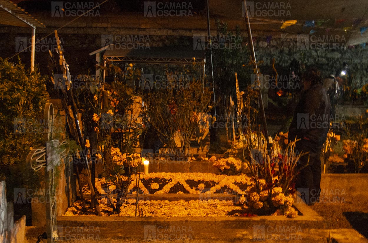 Pobladores de la comunidad de la Trinidad Tepehitec perteneciente al municipio de Tlaxcala, embellecieron las tumbas de sus seres queridos con ofrendas florales para honrrar a sus difuntos la madrugada de este dos de noviembre.